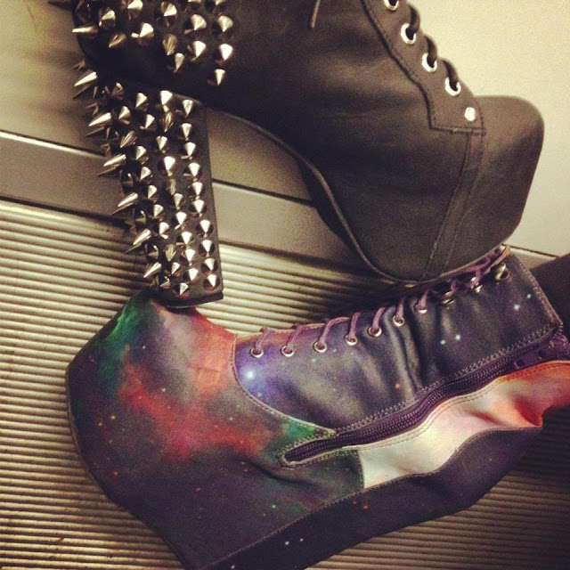Hej bloggen! Jeg er snart på vej i byen med mine tøser. Lige nu sidder vi hjemme hos søde Mia og drikker os klar til i aften, haha. Håber i har en dejlig aften, her af et billede af mine og min søde veninde Katrines sko. Hendes er de nederste Damsel galaxy Jeffrey Campbell x Blackmilk og mine er de øverste Jeffrey Campbell Lita Spikes. JC love! Hav en fantastisk aften!